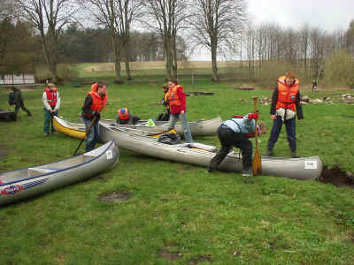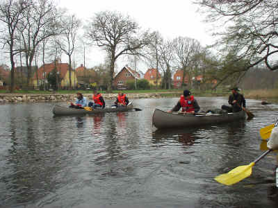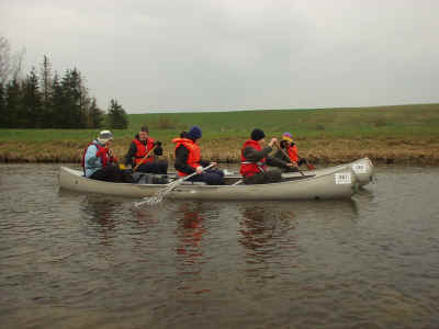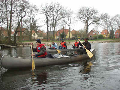 Søndag: Søndag er den sidste dag på vores kanotur, og altså den dag vi kommer hjem. Dagen starter med godt vejr, og en lille smule solskin. Men det viser sig bare at være noget gennemløbende, og blandingen af strid strøm og koldt og gråt vejr, lover ikke for den mest humoristiske afslutning på denne kanotur. Men tanken om det varme karbad, og afslappelse ved afsluttet tur, driver de fleste, så der bliver alligevel sejlet i et anstændigt tempo. Efter ca. 4 timers sejlads ankommer vi glade til vores mål i Næstved, (selvom det måske godt kan virke bizart at være glad for at være ankommet til Næstved), og så bliver der trukket kanoer op af åen, og afvaskning. Resten af tiden bliver brugt på telavning og frokost. Turen er nu ovre, og vi er blevet kørt til frydenborg, hvor vores forældre ”glædeligt” har taget imod os, og nævnt at de har ”savnet” os. Der bliver sunget af, og sagt tak og farvel for en nogenlunde veloverstået kanotur, der har strukket sig over 3 dage og tredive kilometer. Erindret og skrevet af Morten van der Keur |