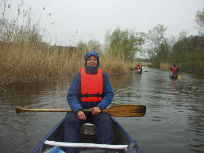 | Nu er vandet straks mere smuldt og det går meget nemmere. De fleste er også ved at lære at styre padlen rigtigt. |