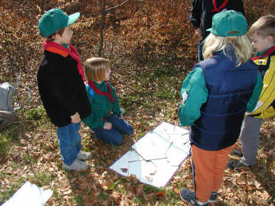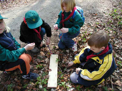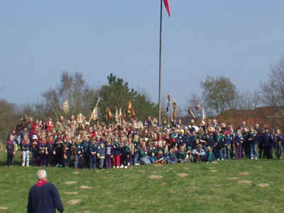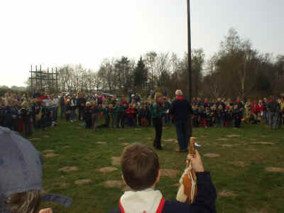 Bæverne, ulvene og juniorspejderne var mødt op på Frydenborg til årets Sct. Georgsløb d. 21. april 2002.
