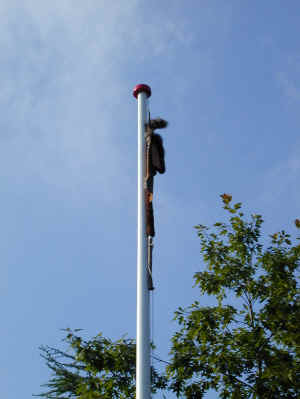 Hvis en spejder-patrulje glemmer sin patruljestander et sted. Ja - så kan man finde den de mærkeligste steder bagefter. Et yndet sted at gemme den er i toppen af flagstangen.