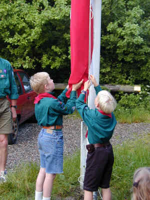 Hver morgen skal flaget op og hver dag skal det ned igen. Man skiftes, så alle får prøvet.